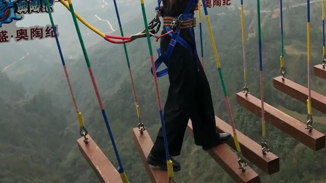 另外一个网红景点就是步步惊心,平均30厘米一个踏板,背后只有一根绳子,然后一步一步的跨过去,还有一个难度高一点的极限飞跃,要做的的就是跳过去,不经意间还会掉下去,不得不佩服那些胆子大的人。