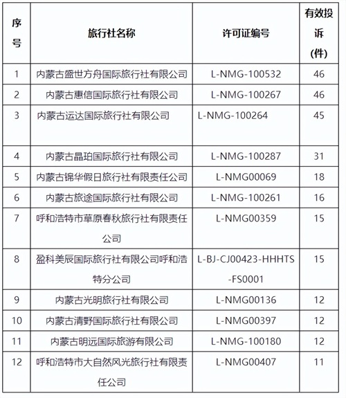 投诉量较多!呼和浩特这12家旅行社被“点名”