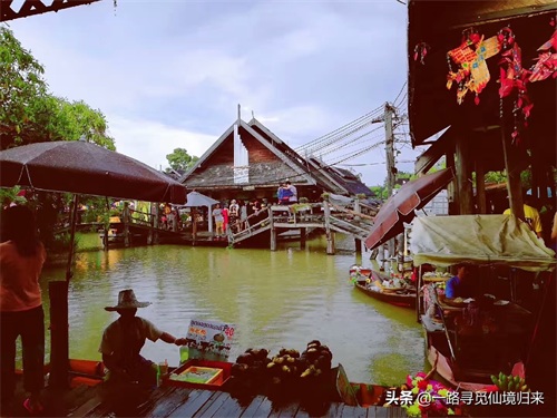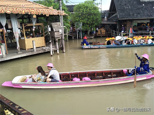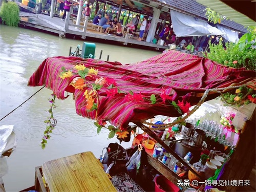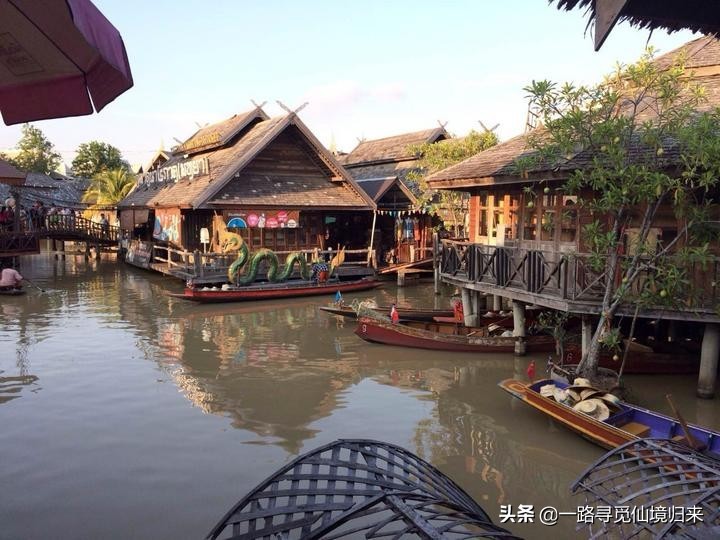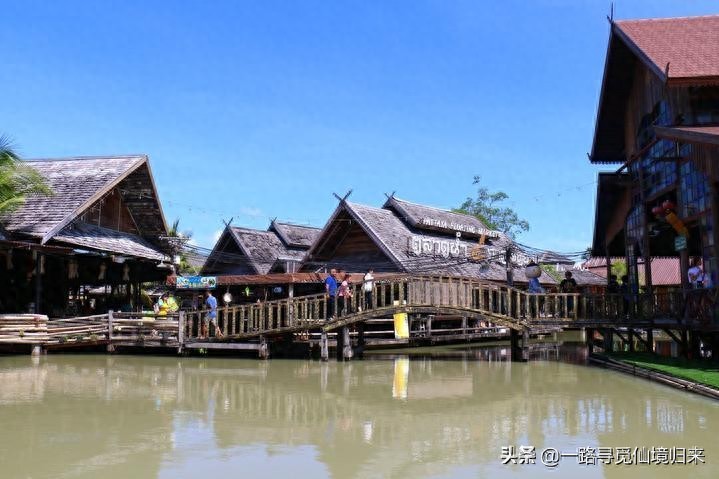 这里的一切都是水上的,小交通可以靠划船,全部的房屋也都是建在水上的,他们居住在泰式木屋中,河道弯曲,泛舟水上,感受曲折中的无限魅力。