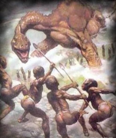 据俾格米人描述:恐龙在盆地深处的一处河边发现的,体长20米,长颈、长尾、三爪的巨型动物。