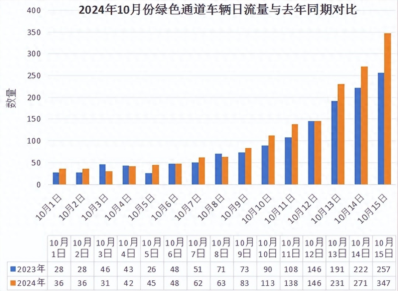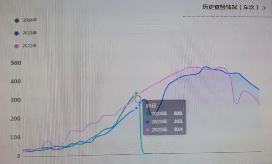 通过 “快快绿通车” APP 调取历年数据发现,每年10月中旬至11月上旬,是运输苹果车辆通行高峰。分公司针对数据研判情况,提前调整工作人员班次,增加“绿通”查验人手,特别是在16 时至 23 时的日车流量高峰期间,保证车道开启和人员配备充足,确保车辆能够快速、顺畅通行。