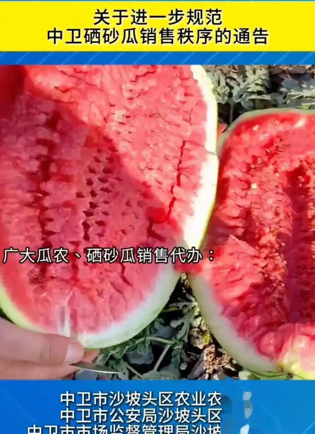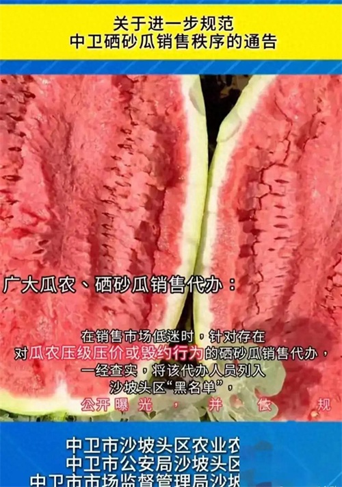 当地当局也意识到了问题的严重性,中卫沙坡头区的农业农村局、公安局和市场管理局等部门纷纷出手,发出公告要整顿西瓜市场。