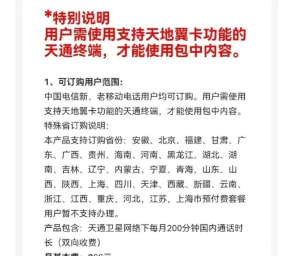 根据中国电信提供的价格,每月200元可以提供200分钟的通话,从一方面来说是比较贵的。但需要注意的是,这项工作有两种收费方式。如果对方不开通这个功能,据说费用很高。超额费用为1.8元/分钟,主叫、被叫双向计费。在卫星网络上发送短信费用为0.4元/条,接收免费。拨打国际电话或发送国际短信均按天通标准资费计算(详情可查看电信网站)。