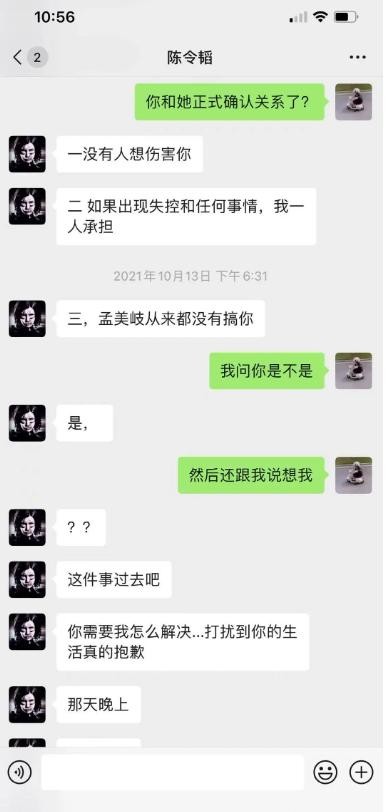 从两人公开对话记录可以看出孟美岐明显有追求陈令稻意图, 她不仅主动提出要带着"老公"共同旅行还预定私密酒店等细节都彰显其主动性质. 孟美岐还使用含义隐晦数字如“456”以传达特定意思,而网友解读为“发骚拉”。