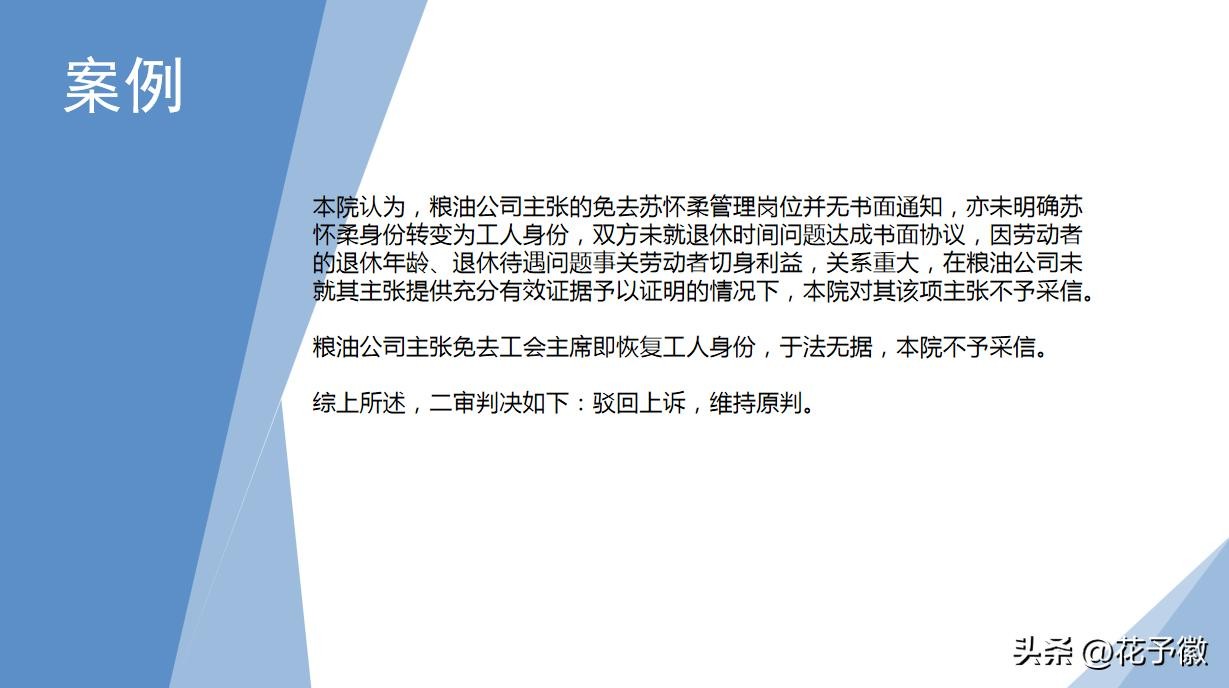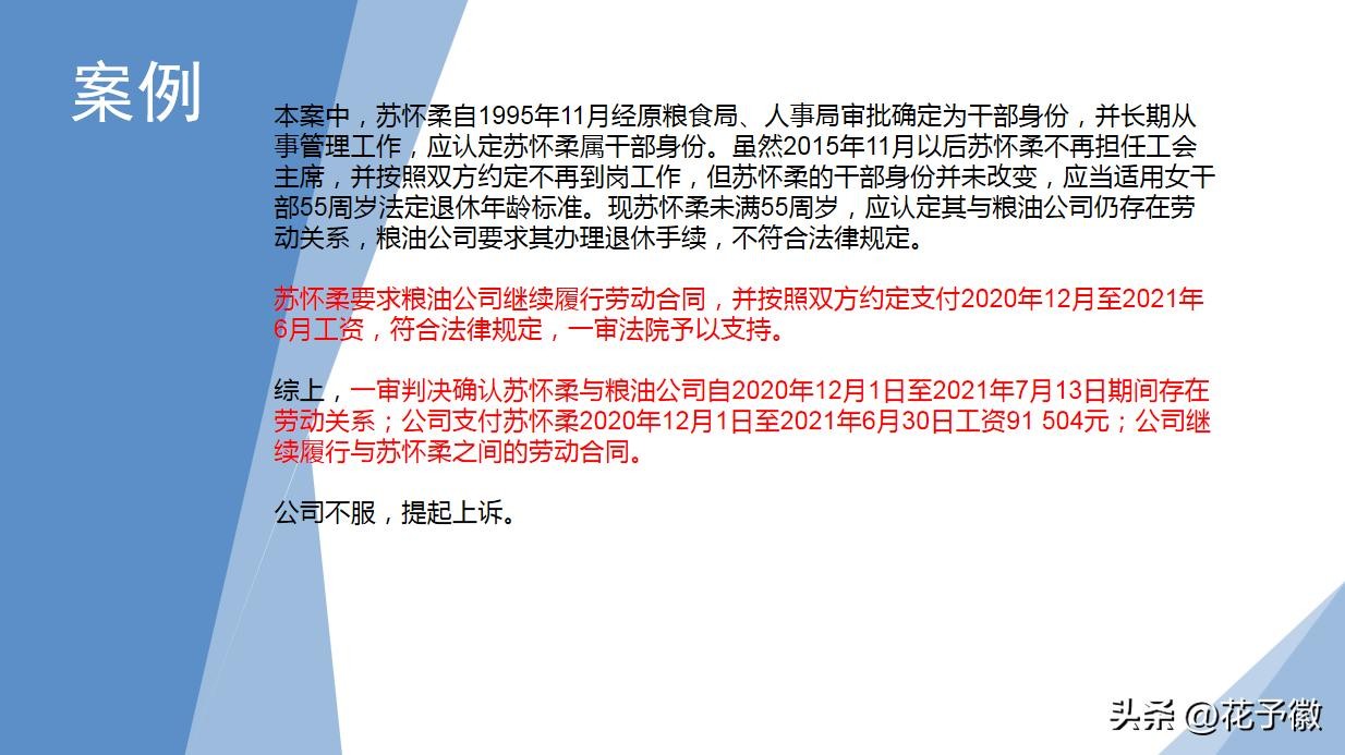 二审判决:目前判断女职工退休年龄,不再按照干部、工人的身份来确定,而是按照管理岗与非管理岗的岗位区别来判断