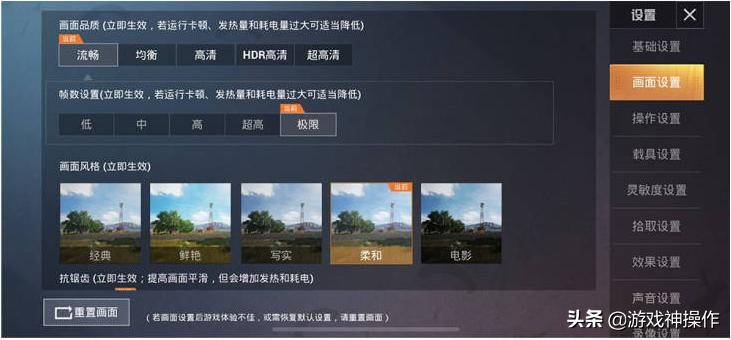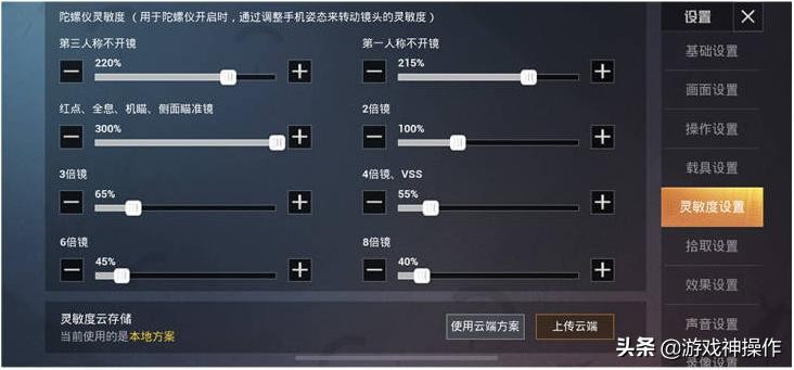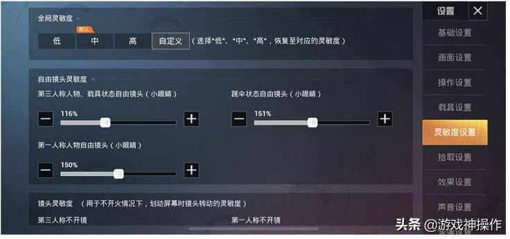 系统推荐【中级】灵敏度,(选择低、中、高,恢复至对应的灵敏度)