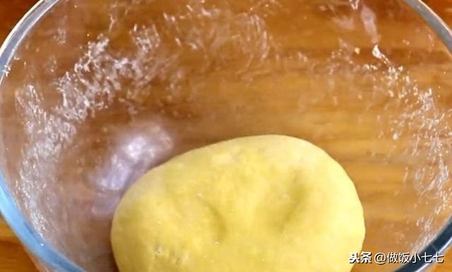 准备面粉300克,打上鸡蛋5个,食盐5克搅拌均匀,搅拌到没有干面粉就可以了,用手揪起一块面粉,只要是成团不松散就可以,盖上一层保鲜膜,饧面30分钟,时间到取出来,揉成一个光滑的面团,再醒发一个小时。
