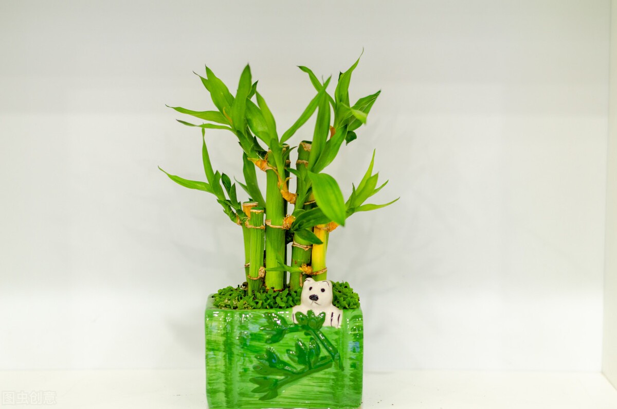 富贵竹具有细长潇洒的叶子,翠绿的叶色,其茎节表现出貌似竹节的特征,却不是真正的竹。