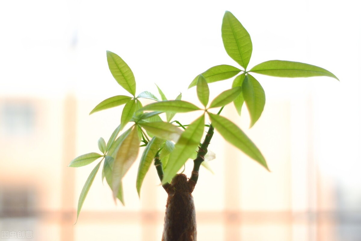 光瓜栗是木棉科、瓜栗属的常绿小乔木,它的英译名为马拉巴栗,原产于巴西。