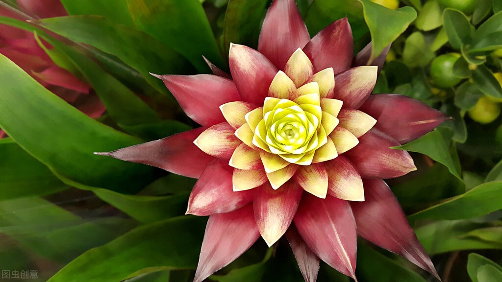 鸿运当头是一种凤梨科的花卉,因为花芯鲜红,所以叫鸿运当头。