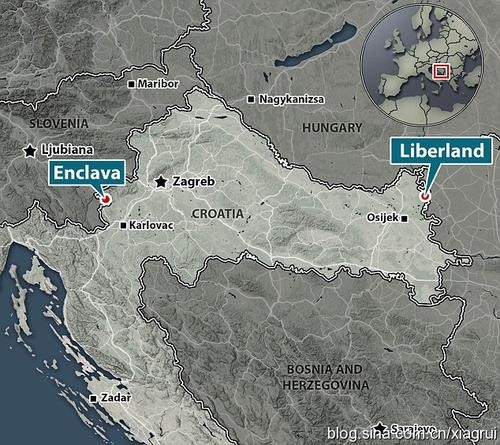根据《英国电讯报》报导,这个虚拟国“恩克拉瓦王国”位于斯洛维尼亚克的梅特利卡镇(Metlika)及罗埃西亚首都萨格勒布(Zagreb)往西约30英里的地方,