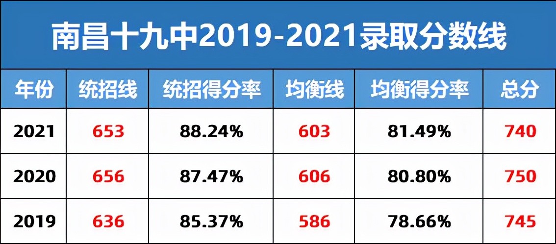南昌十九中2019-2021年中考录取分数线汇总及分析