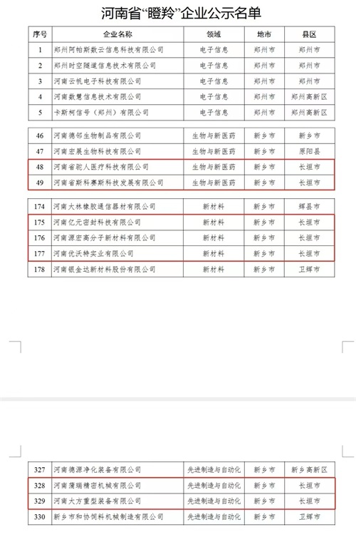 省级“瞪羚”名单,长垣市7家企业上榜!