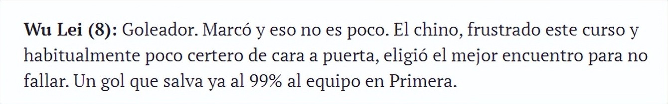 另一家西媒《世界体育报》写道,“武磊是西班牙人这场比赛的英雄,终于斩获了个人本赛季西甲首球!”