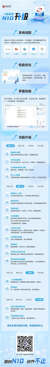 清单计价专家N10作为宏业软件公司全新计价产品,全面支持统信、中标麒麟、银河麒麟等国产操作系统,并在运算速度、实用功能等方面进行了显著升级。目前软件已在宏业官网(www.hysware.com)正式挂网,注册锁用户可直接下载免费使用。