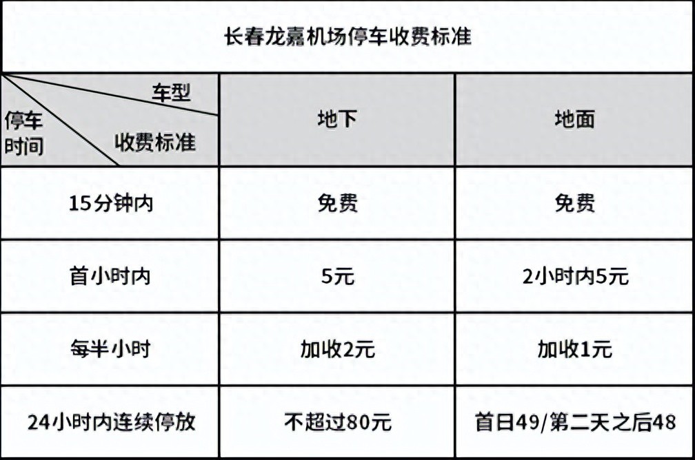 长春龙嘉国际机场停车场收费标准