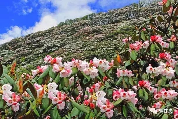说到高山杜鹃,四五月的时候,燕子沟的高山杜鹃大片绽放。花瓣粉白相间,在阳光的照耀下,娇俏可爱。