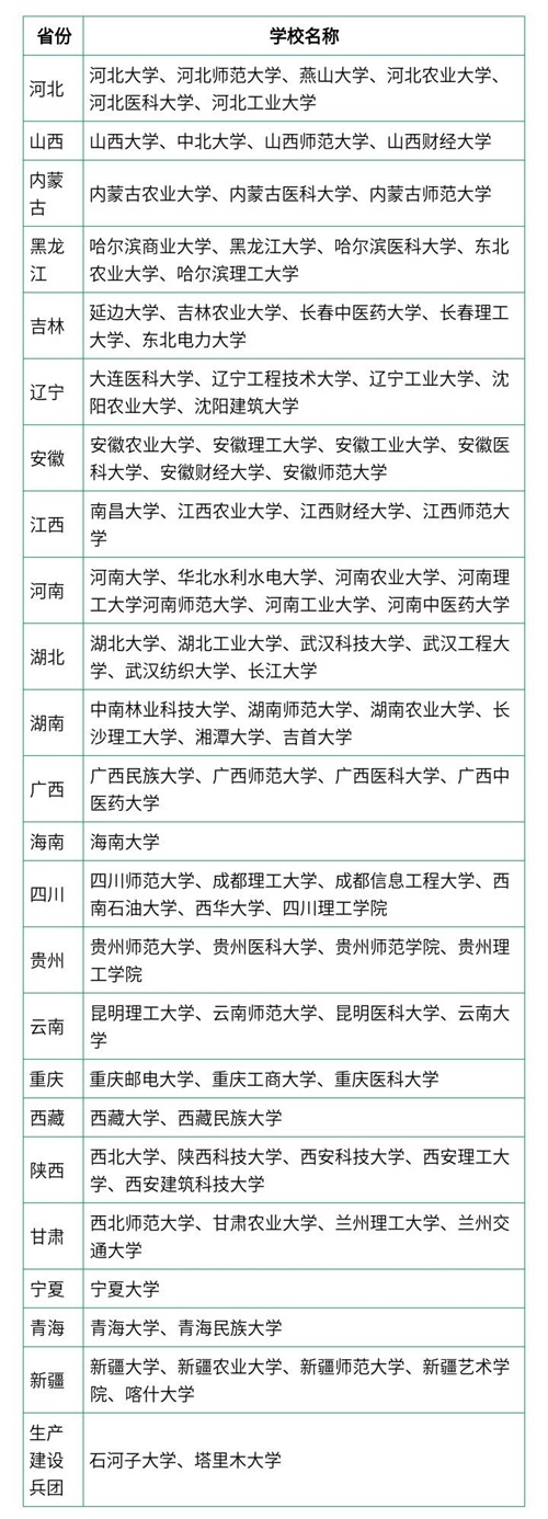由于我国中西部高校基础能力建设工程较弱,为促进我国高等教育的均衡协调发展,提高人才培养质量,使中西部一批本科高校的实力得到较大空间的提升,国家教育部重点支持建设了中西部24个省、自治区、直辖市的100所地方高校的发展建设。