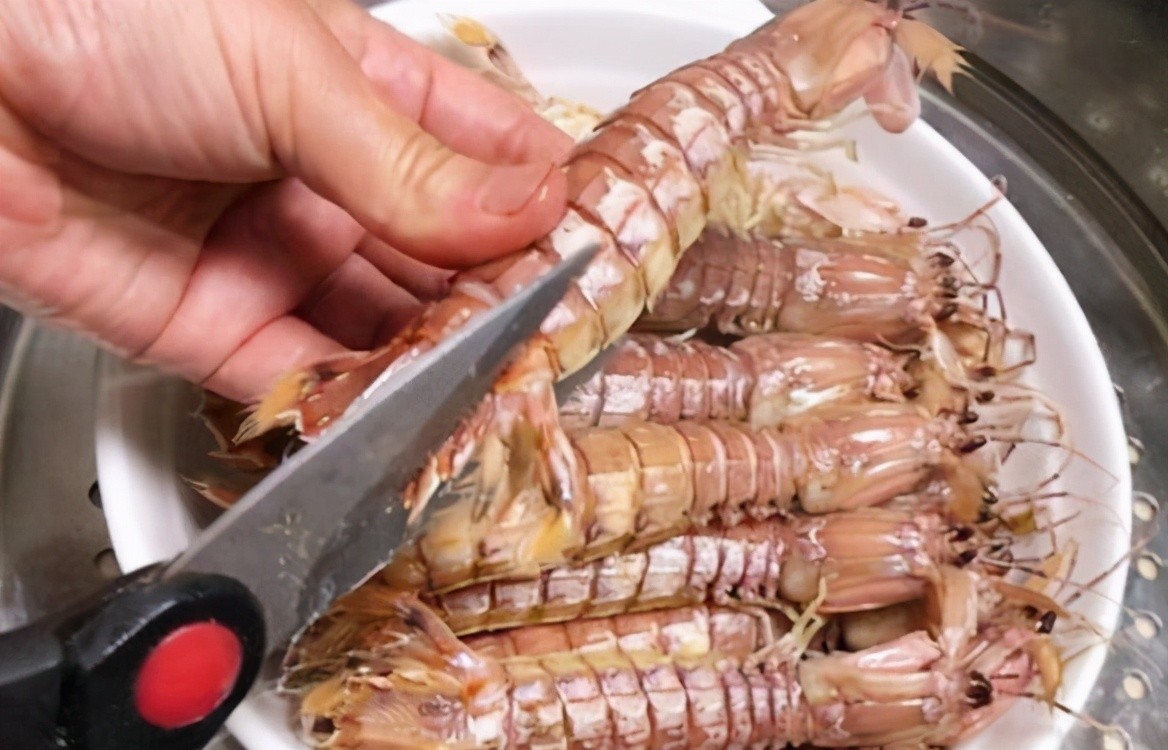 不管是清蒸,还是水煮。最后出来的皮皮虾味道都是很不错的,只是说不管我们选择的是哪一种方法,烹饪的时候都要掌握一个时间,如果时间过长,那么对于皮皮虾的口感是肯定会有影响的。烹饪熟了之后,那么重点就来了。开始教大家快速剥虾的方法了。我们先要准备一把剪刀,将皮皮虾的两侧剪开。注意在剪开的时候,细心一点,避免将虾肉剪掉。那可就有些浪费。