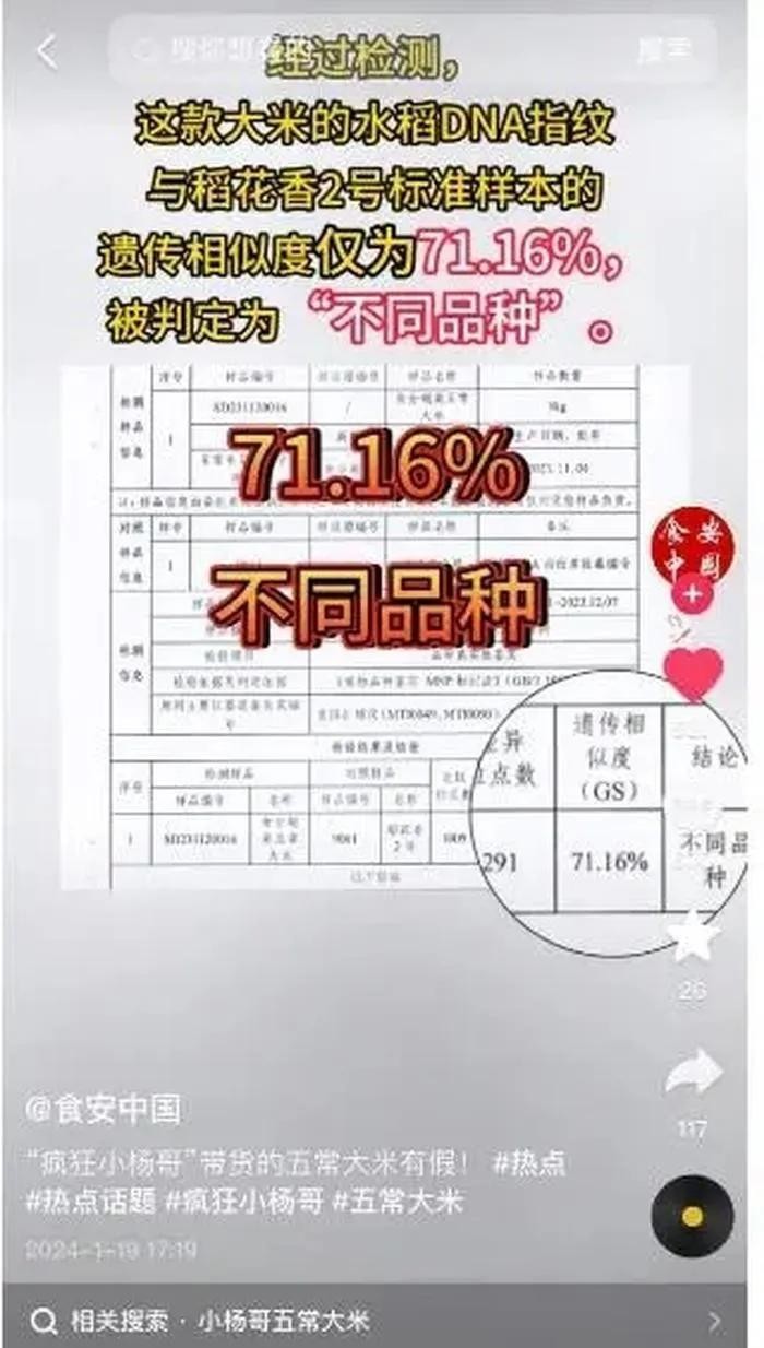 为了验证小杨哥所言是否属实,一些消费者通过各种渠道购买了小杨哥推荐的五常大米稻花香2号,并进行了送检。经过检测,这些消费者发现小杨哥所销售的五常大米和稻花香二号的遗传相似度较低,这意味着这些产品可能并非真正的稻花香二号。同时,一些消费者还反映,他们购买的五常大米稻花香2号存在品质问题,口感不佳,甚至有异味。