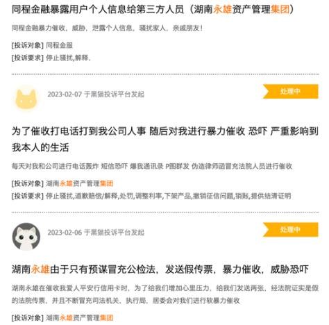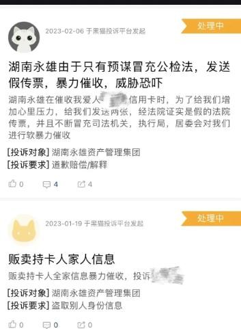 永雄集团把自己说得多么清清白白,但实际上,在网上各大平台都有一大堆永雄集团暴力催收的投诉,除了催收的惯用伎俩以外,甚至还有严重的暴力行为,如冒充公检法、人身威胁、堵门闹事等。。。。