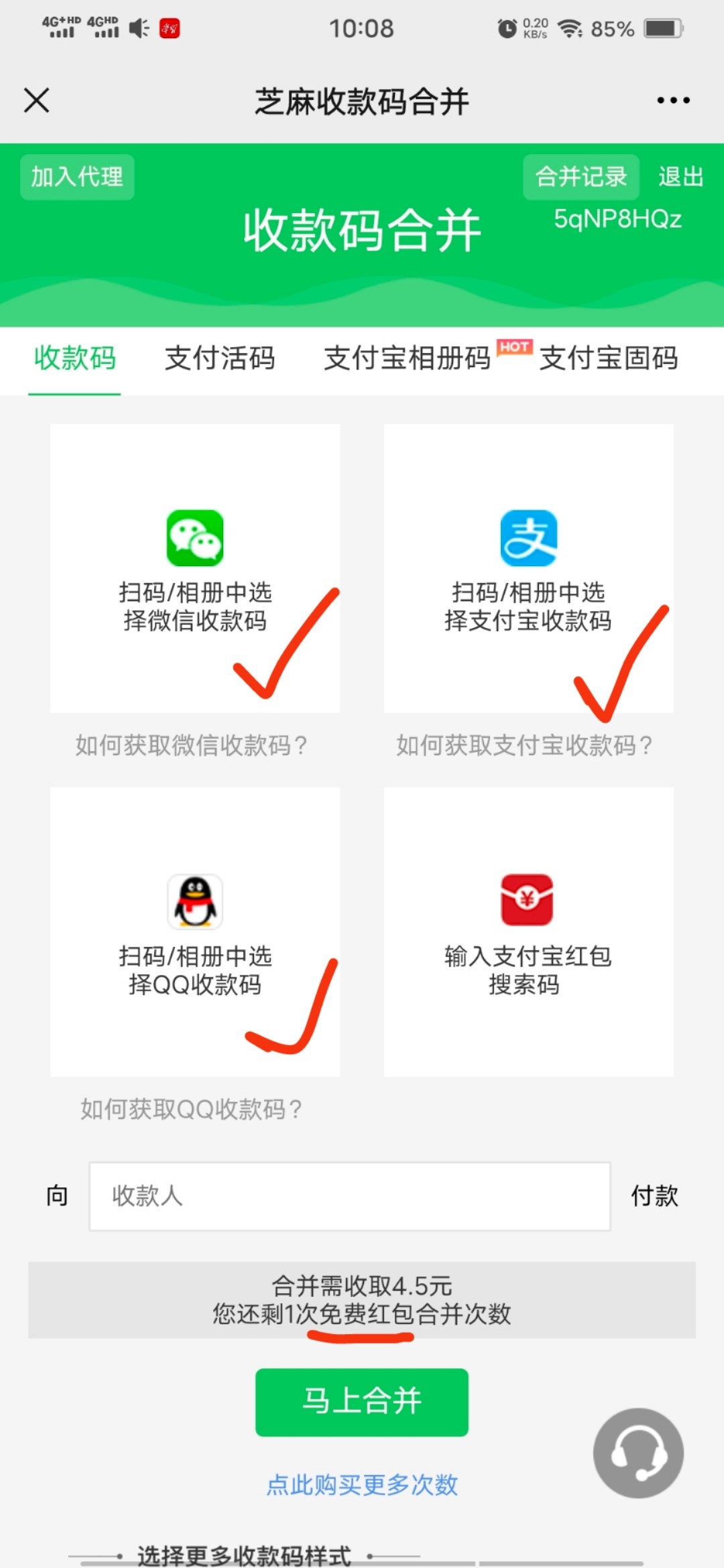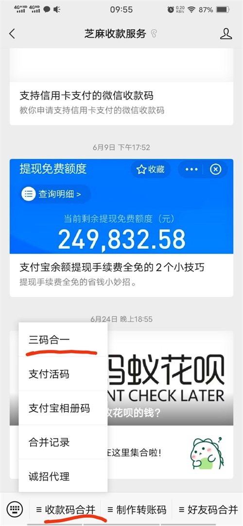 然后点击“收款码合并 三码合一”