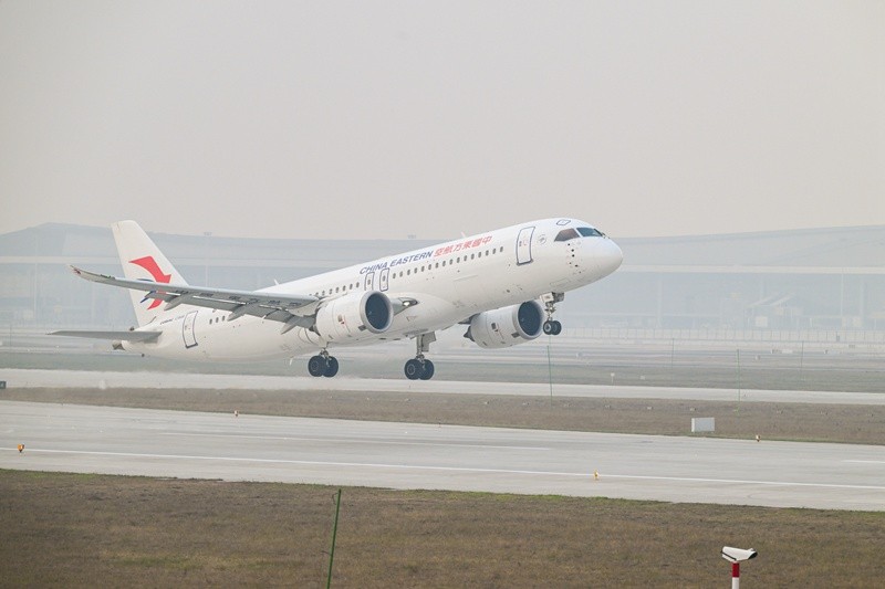 12月26日,重庆江北国际机场,东方航空公司C919飞机执飞的MU5428航班(重庆-上海虹桥),成为第四跑道启用后首个起飞的航班。邹乐摄