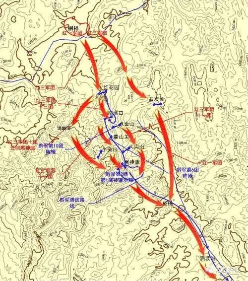 四渡赤水:红军三渡赤水后,国民党军队仍然紧追不舍。为了彻底摆脱敌人,红军于3月21日至22日,在鸭溪至茅台渡之间四渡赤水河。这一次,红军采取了迂回战术,成功突破了敌人的封锁线,为继续长征创造了条件。