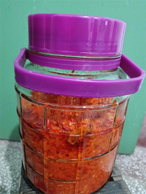 制作完成后,将辣椒酱装入干净的玻璃瓶中,放入冰箱冷藏保存。这样不仅能延长保质期,还能让辣椒酱的口感更加醇厚。