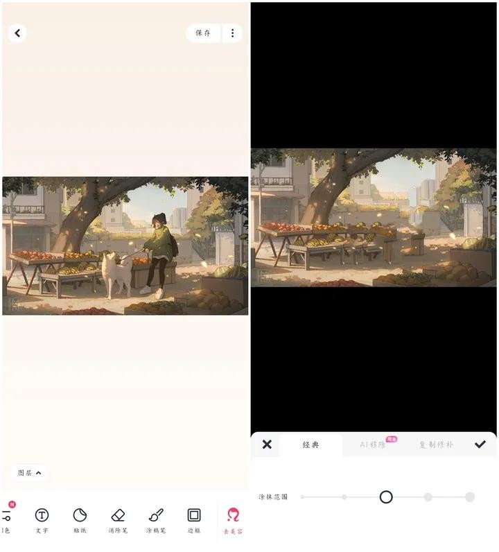 将图片上传以后,选择合适的笔刷将涂鸦消除,最后将图片下载到手机即可,操作简单,去掉涂鸦后的图片完整度很高,和原图没有什么太大的区别,下面是涂抹前后的图片,看起来真的很不错