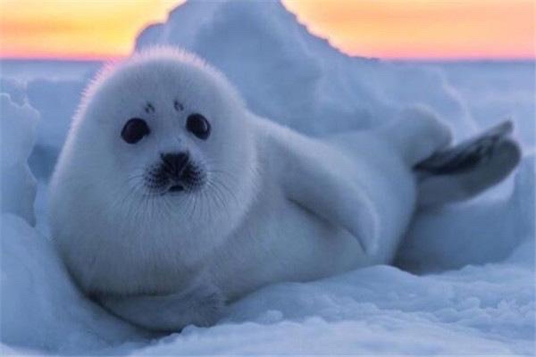 格陵兰海豹简直就是能“萌死”人,它们主要分布在北冰洋和亚特兰大的极地地区,全身白色除了面部一点黑,很有特点。