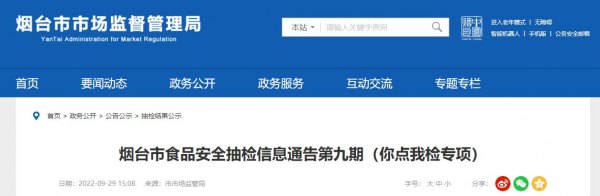 中国质量新闻网讯 2022年9月29日,山东省烟台市市场监督管理局发布烟台市食品安全抽检信息通告第九期(你点我检专项)。本次抽检共200批次,根据食品安全国家标准检验和判定,合格率100%。