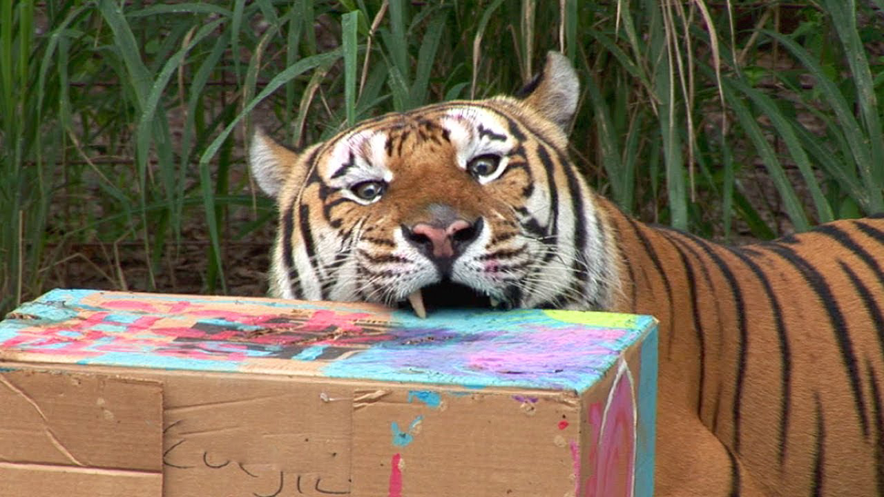 很多人设计了诸多的实验,其中针对食肉动物,典型的就是用各种各样的装置,将食物封装起来,然后看动物们能不能打开装置,从而获得里面的食物。