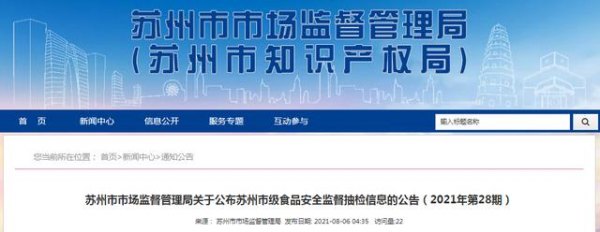 中国质量新闻网讯 近日,江苏省苏州市市场监督管理局发布苏州市级食品安全监督抽检信息的公告(2021年第28期)。具体信息如下: