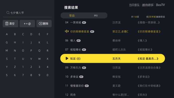 当贝酷狗音乐,有着6000万+的歌曲版权,让你想唱就唱,《一笑倾城》《你的眼睛像星星》《慢慢喜欢你》《至少还有你》这些甜甜又好听的歌曲,总能勾起属于你们的回忆,搜索“七夕情人节”还会有专属的歌单哦!二人世界的生活,总少不了音乐的调解。
