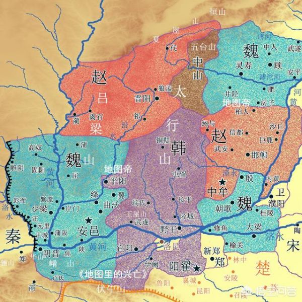 韩国的国土分布大概在当今的山西、河南一带,极盛时势力染指陕、豫、冀、晋、鲁、皖六省。