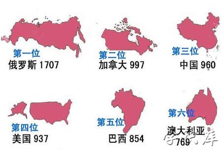 国土面积排名前十的国家 世界各国国土面积排名