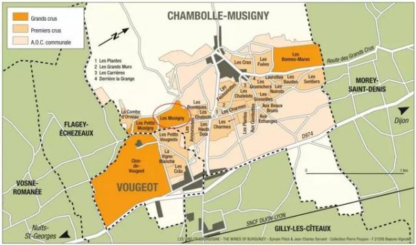 香波-慕西尼产区图,慕西尼特级园就在图中圆圈所圈位置