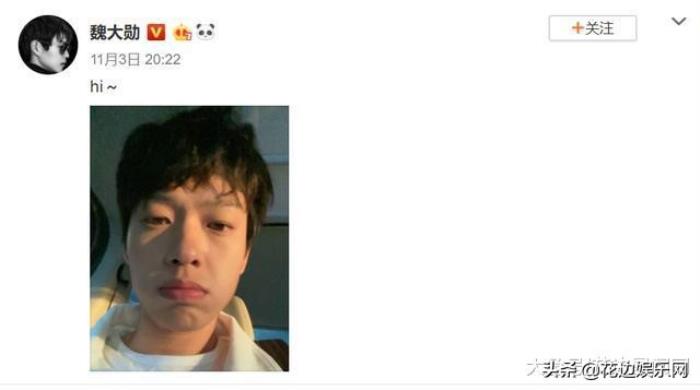 11月3日晚,和魏大勋分别在各自的社交网站上发布了新动态,虽然内容一个是撸猫一个是自拍,可配上的文案却是情侣文案“hi”。