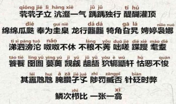 茕茕(qióng)孑(jié)立,沆(hàng)瀣(xiè)一气,踽踽(jǔ)独行,醍(tī)醐(hú)灌顶