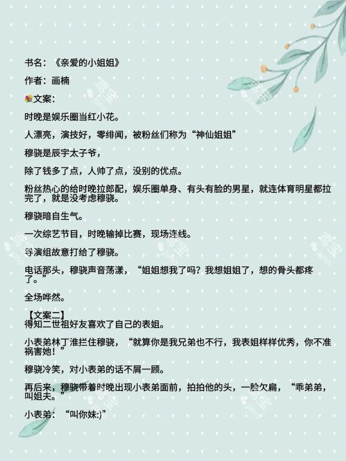 今天给大家推荐的是娱乐圈姐弟恋小甜文[玫瑰]