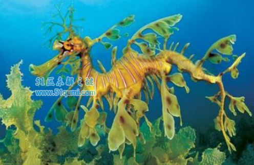 叶海龙可能是世界上长得最像龙的生物之一了吧,它也是一种奇怪的生物。叶海龙属于海龙科,主要栖息在隐蔽性较好的礁石和海藻生长密集的浅海水域。无论形态、生活习性和食物习性都与海马很相似。因其身上布满形态美丽的绿叶,游动起来,摇曳生姿,被称为“世界上最优雅的泳客”。