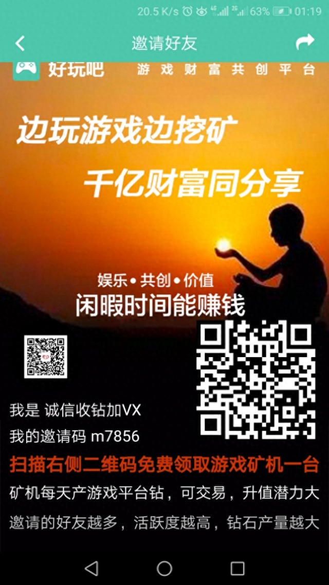 大家好,我叫飞翔,很多人在网络上都在问好玩吧是不是骗局?或者说好玩吧是真的赚钱吗等等,今天我就给大家分享一下我与好玩吧的结缘过程。2019年五月底,微信上偶然收到一条推广信息,打开一看是我以前加过的一个朋友发来的,里面写着“零投资、零风险、免费注册赠送试炼矿机,免费挖矿获取钻石,交易秒到账”,出于好奇就没多想,毕竟不要钱,先下载再说,然后注册好了,也下载了,也实名认证,然后我就询问他接下来怎么玩?他就告诉我三点。