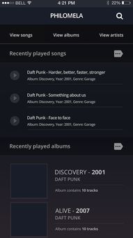 一旦进入音乐播放器,我们就可以浏览自己的音乐库了。苹果手机会自动从你的iTunes库中同步所有已经下载或购买的音乐。你可以根据不同的分类方式来查找你想听的歌曲,包括按艺术家、歌曲或者专辑进行筛选。
