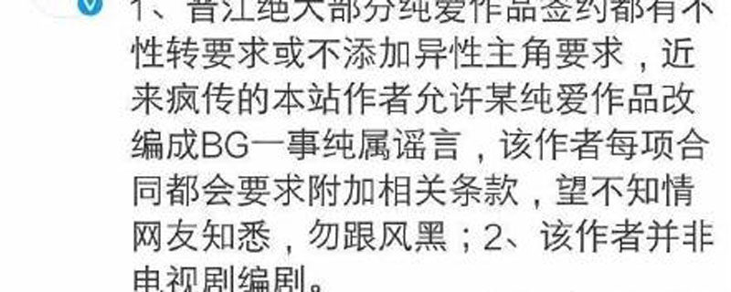 这种传言后来被晋江文学城出面辟谣了,官方称,网上关于墨香铜臭授权《魔道祖师》改成BG的说法是谣言,墨香铜臭只是小说作者,并不是《陈情令》编剧。
