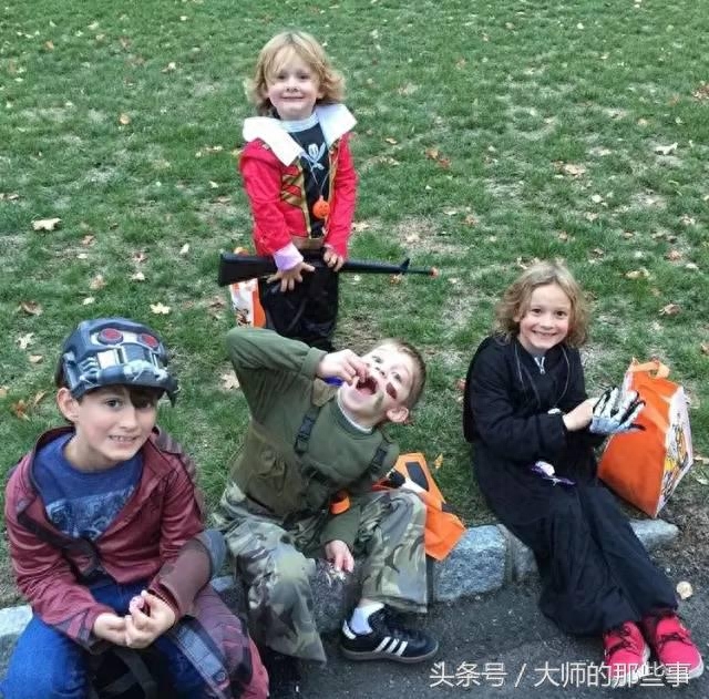 万圣节的时候,Hudson(最右边)准备了很大一只包包要糖果。后面的就是弟弟。