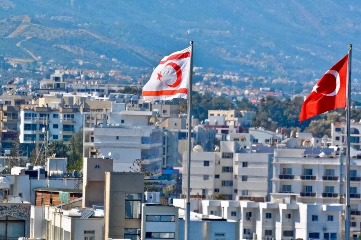 左边是北塞浦路斯国旗,右边是土耳其国旗(图片来自网络)