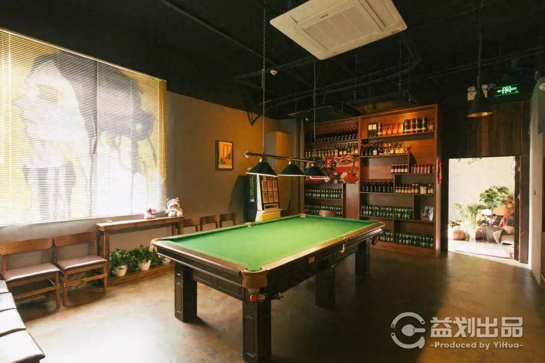 在酒吧里打台球,昏黄的灯光下,别有一番情调,喝开了来一局,也不失一个好的放松方式。
