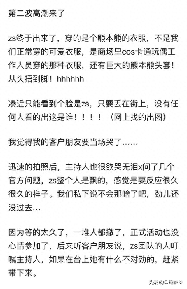 首先,有网友扒出了郑爽“熊本熊事件”的一个帖子。据悉,几年前郑爽和吴秀波等人一同参加活动,但当所有人都登台接受采访后,郑爽却迟迟不出来,而给出的理由是没有衣服换。