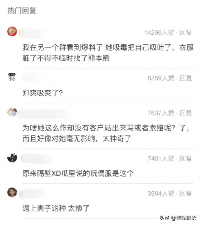 对此帖子,评论区有网友表示“她吸毒把自己吸吐了,衣服脏了不得不临时找了熊本熊”。